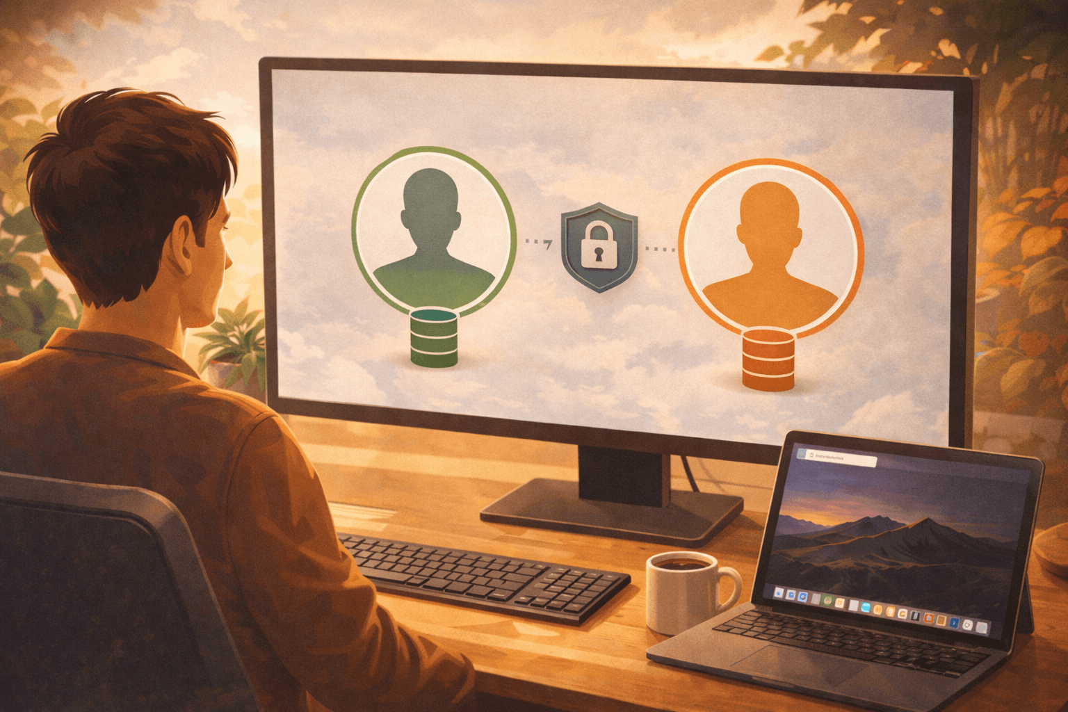 Per-account database isolation so switching accounts never leaks data.