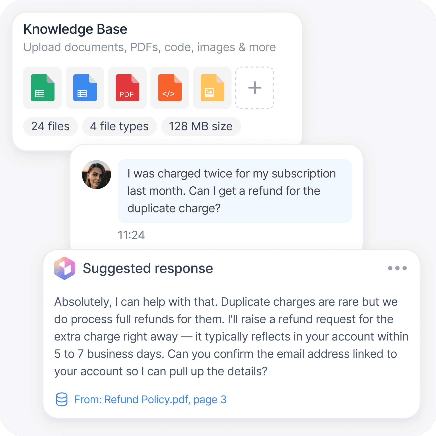 Upload reference docs and Raven includes them when answering mid-meeting.