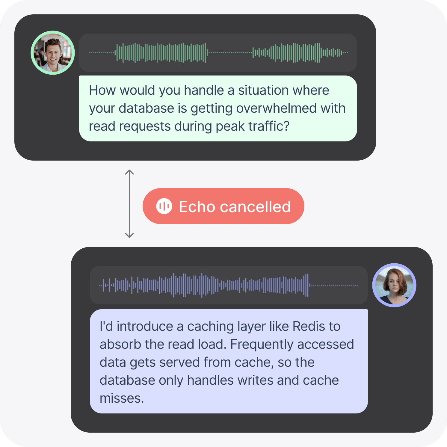See what everyone is saying as they say it. Both sides of the conversation, transcribed word-for-word in real-time.