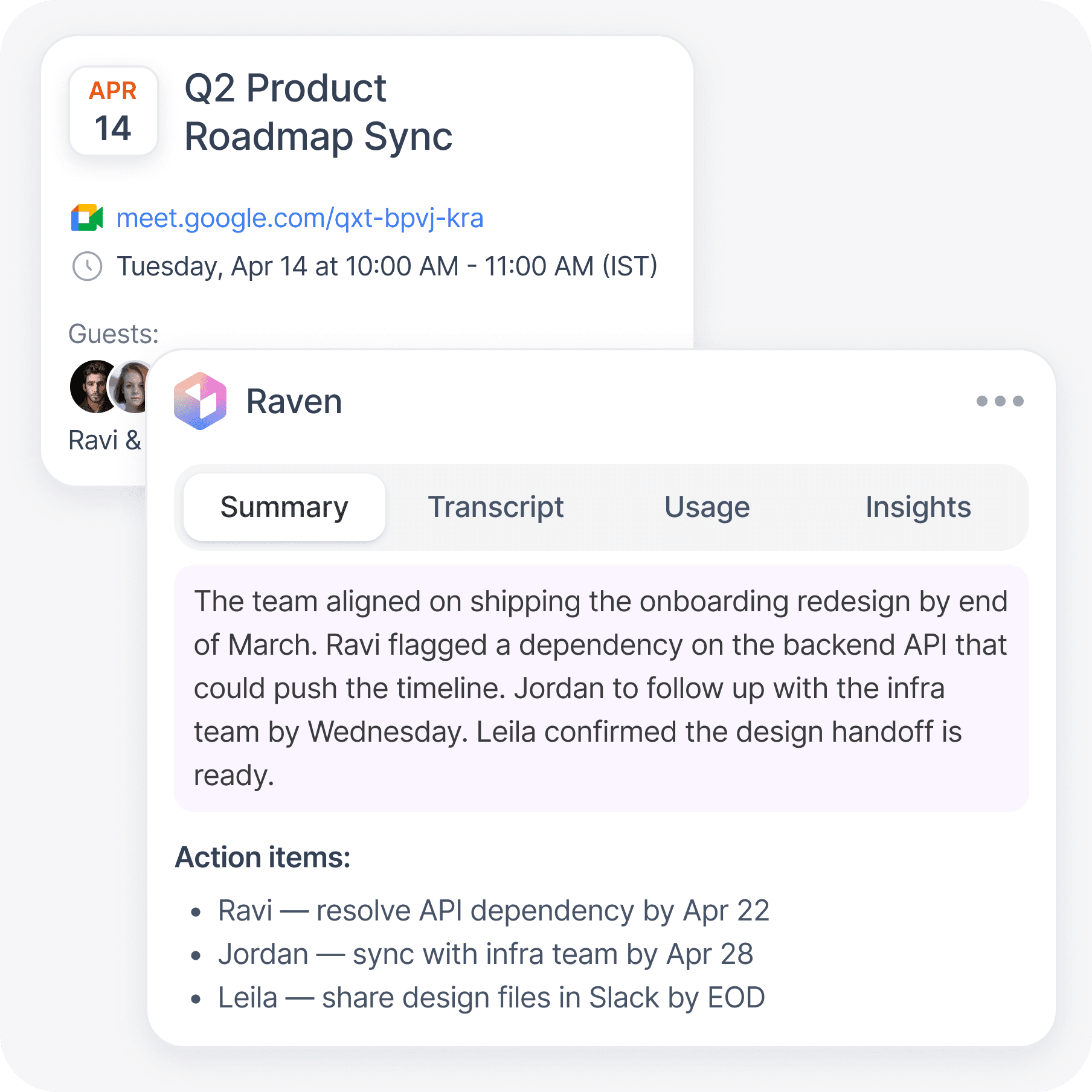 Whether it's a high-stakes sales call or a casual team sync, Raven gives you superpowers without anyone knowing.